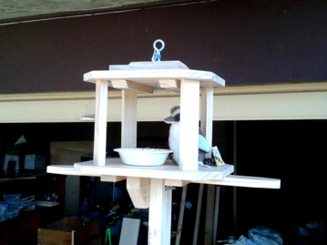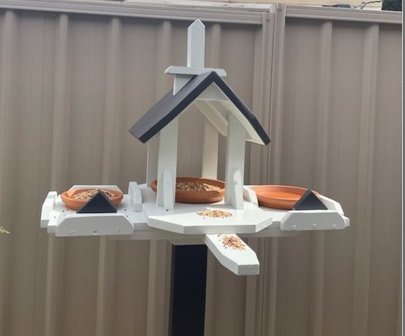 Kirsty painted the bird feeder to match her house and added the water tray to the front landing strip. Looks fabulous and is seen being admired by her lovable Labradoodle.