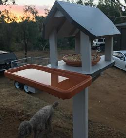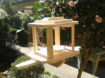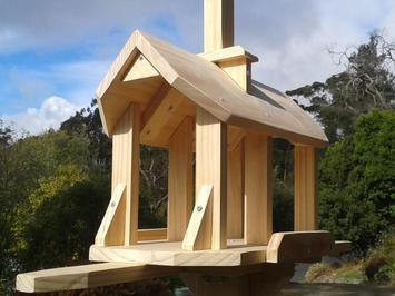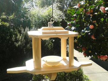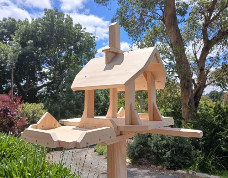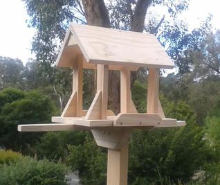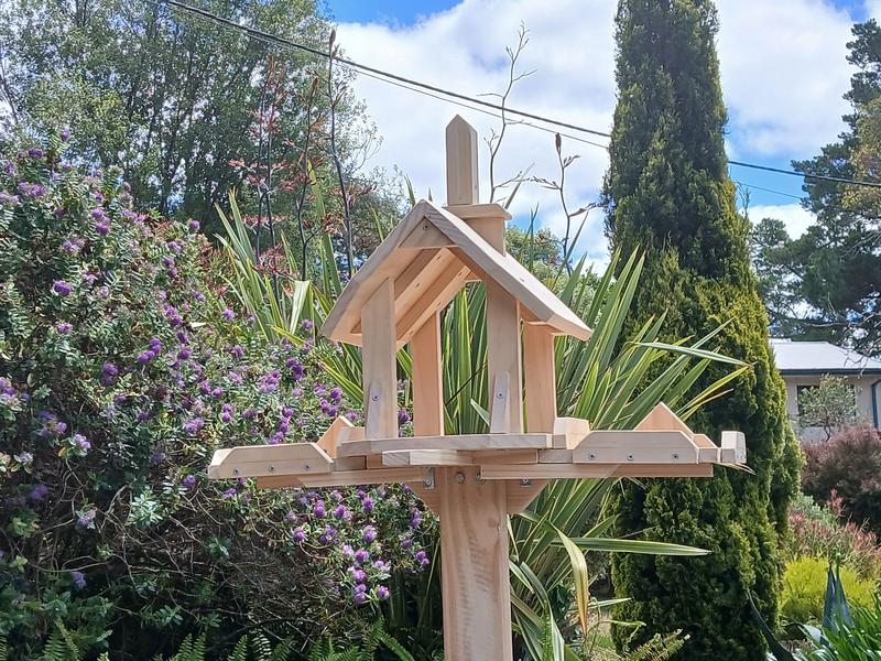 My Feeders are Personally designed and Hand Crafted - they are lovingly built to last and made here in Aldgate. They are each screwed and glued (never nailed) and made from selected TOP QUALITY solid timbers. The heights are easily adjustable and the posts simply unscrew with wingnuts for easy transport.