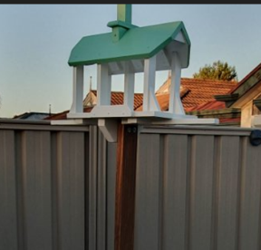 Left Side Thank you to Darren and Chris for the 2 photos of their Chalet Bird Feeder. They assure me that the cat on the fence is no deterrent to the birds lol